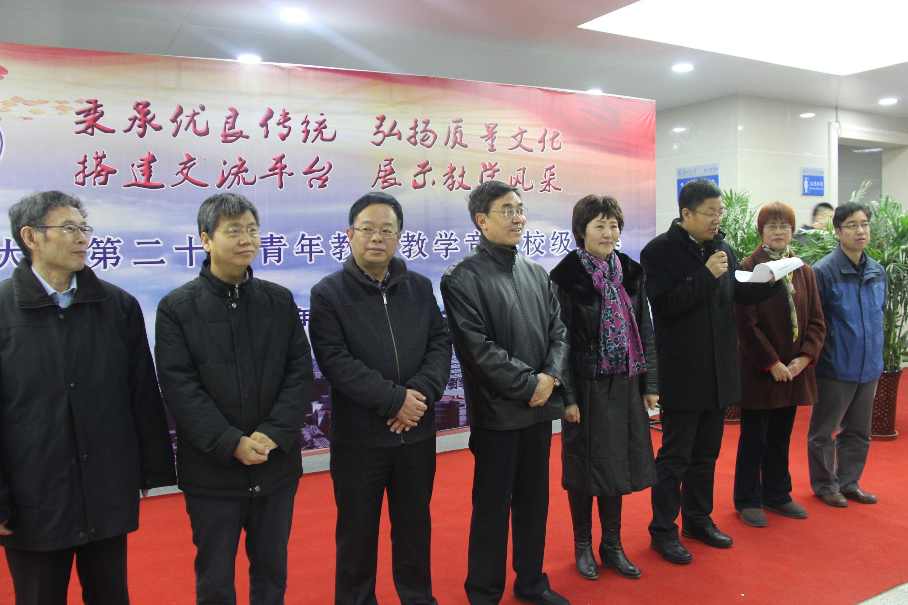 2015年12月12日至13日,我校第二十届青年教师教学竞赛校级决赛在学校第二教学楼成功举办。本次决赛设理工组和人文社科组两个组别,来自全校18个教学单位的31名青年教师参加了决赛。由25名学校督导、教学质量评价专家及相关学院专任教师代表组成了评审委员会,学校纪委、监察处人员组成监督委员会全程监督竞赛。各教学单位教学副院长、教务管理人员及青年教师代表150余人全程观摩了本次决赛。党委副书记、常务副校长李引珍出席开幕式并现场指导竞赛工作。开幕式由教务处处长张友鹏主持。